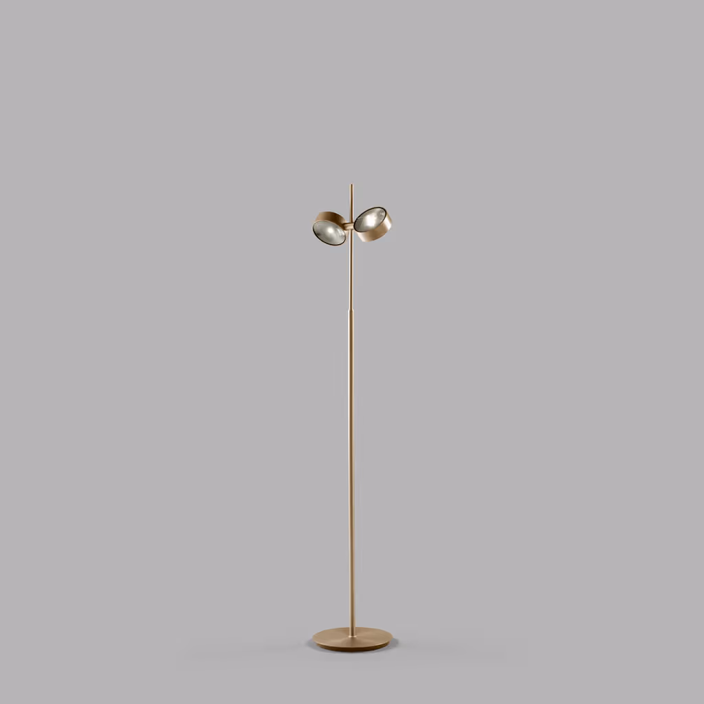 ORBIT is an indoor floor lamp that works optically, spreading light further, wider, and more softly. The optic glass lens provides a glare-free light, eliminating annoyance to the eyes while providing maximum light where needed. The ORBIT Floor lamp can be operated by the touchless sensor to turn the light on/off and adjust the light intensity. Both spots can be controlled independently from one another, thus allowing users to shape their light.